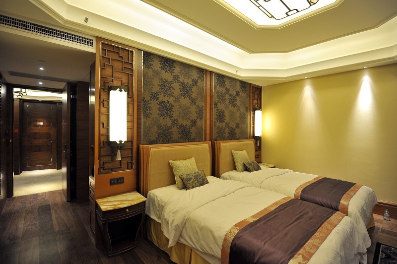 酒店位于香格里拉市中心,距机场仅10分钟车程。客人抵达酒店后,将由身着康巴特色服饰的礼宾员带领沿着回廊走过点缀着铜荷花的平静水池,进入两层楼高的大堂。大堂顶部,橙金色的蚀刻铜片把天窗透入的微妙光折射在另一处室内的水景上,在廊柱间投画出别致的光影空间。